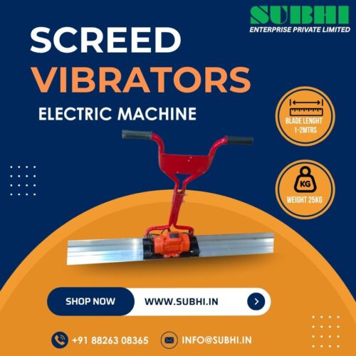 Electric screed vibrators are the backbone of modern concrete flooring and leveling works. Their precision, cost efficiency, and eco-friendly operation make them the necessary tool for every construction professional. From small-scale residential flooring to industrial slabs, these machines ensure every surface is strong, smooth, and built to last. At Subhi Enterprises, we take pride in offering India’s most reliable and efficient screed vibrators (electric). With a commitment to quality, performance, and customer satisfaction, we at Subhi Enterprises help builders/contractors power their construction excellence.